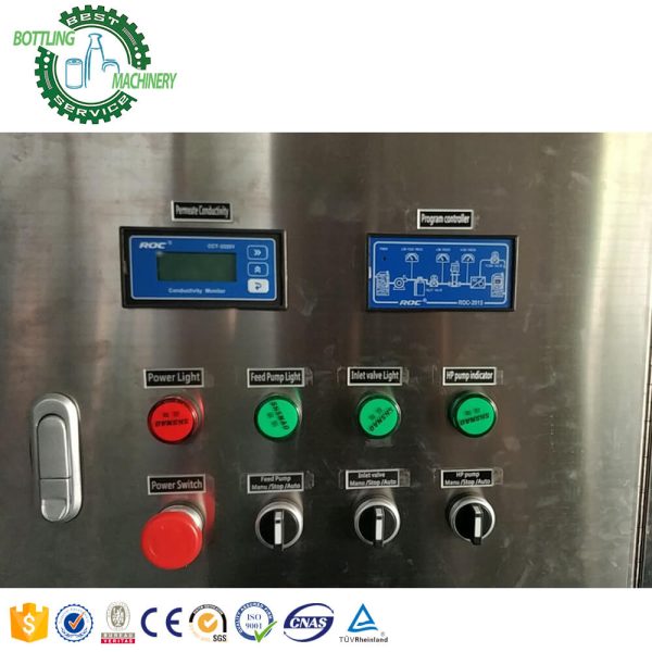 7. The reverse osmosis device uses sufficient pressure to separate the solvent (generally water) in the solution through the reverse osmosis membrane, which is widely used in the preparation of pure water and various desalted water treatment projects. As the reverse osmosis equipment removes most bacteria, colloids, organics and microorganisms while removing salt, the purity of water quality is greatly improved.