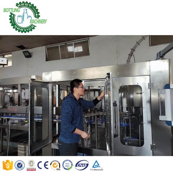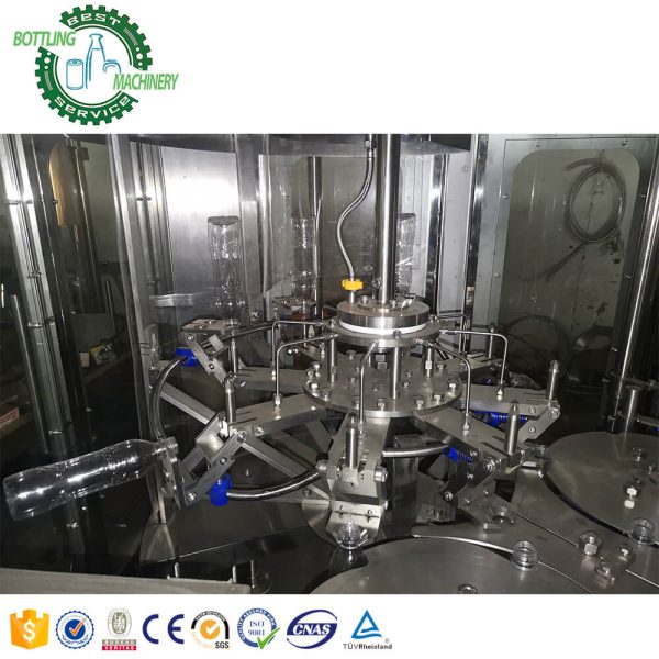 The advanced filling valve technology makes the filling operation faster and more stable. The famous brand programmable logic controller (PLC) is used to control the automatic operation of the machine. It is an ideal equipment for beverage manufacturers.
